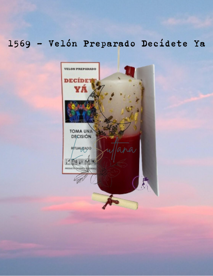 Este velón preparado decídete ya! se utiliza en todo tipo de peticiones que incluyen tomar una decisión importante, pero la persona que tiene que tomar la decisión, no termina de decidirse. Ideal para personas indecisas que debe tomar una decisión, le aclara la mente dándole poder para tomar una postura firme y poder avanzar.